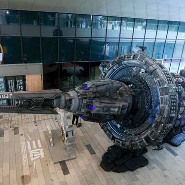 For the promotional campaign of The Three-Body Problem, DEFARA created a series of high-tech, rotating battleship installations that toured key commercial locations across China. The effect was immediate: malls, plazas, and event venues saw surges in visitor traffic and viral social media engagement.